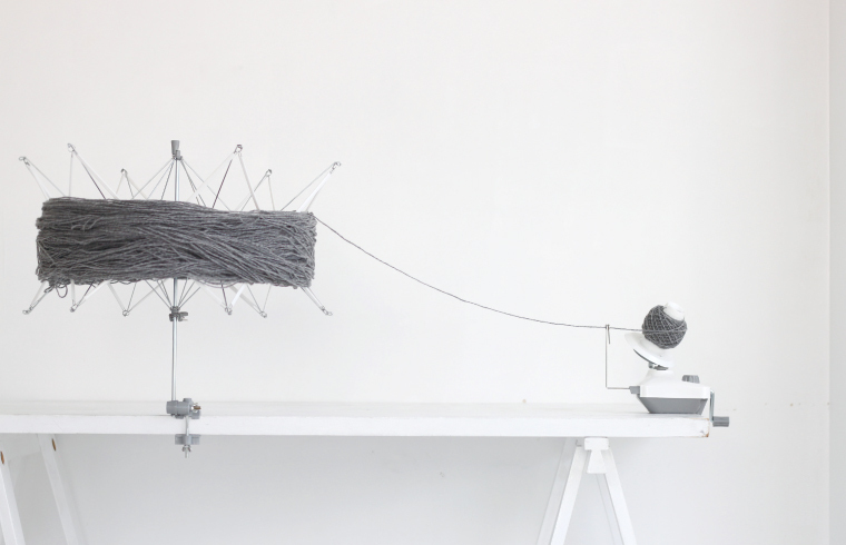 將絞線繞球時搭配捲線器使用