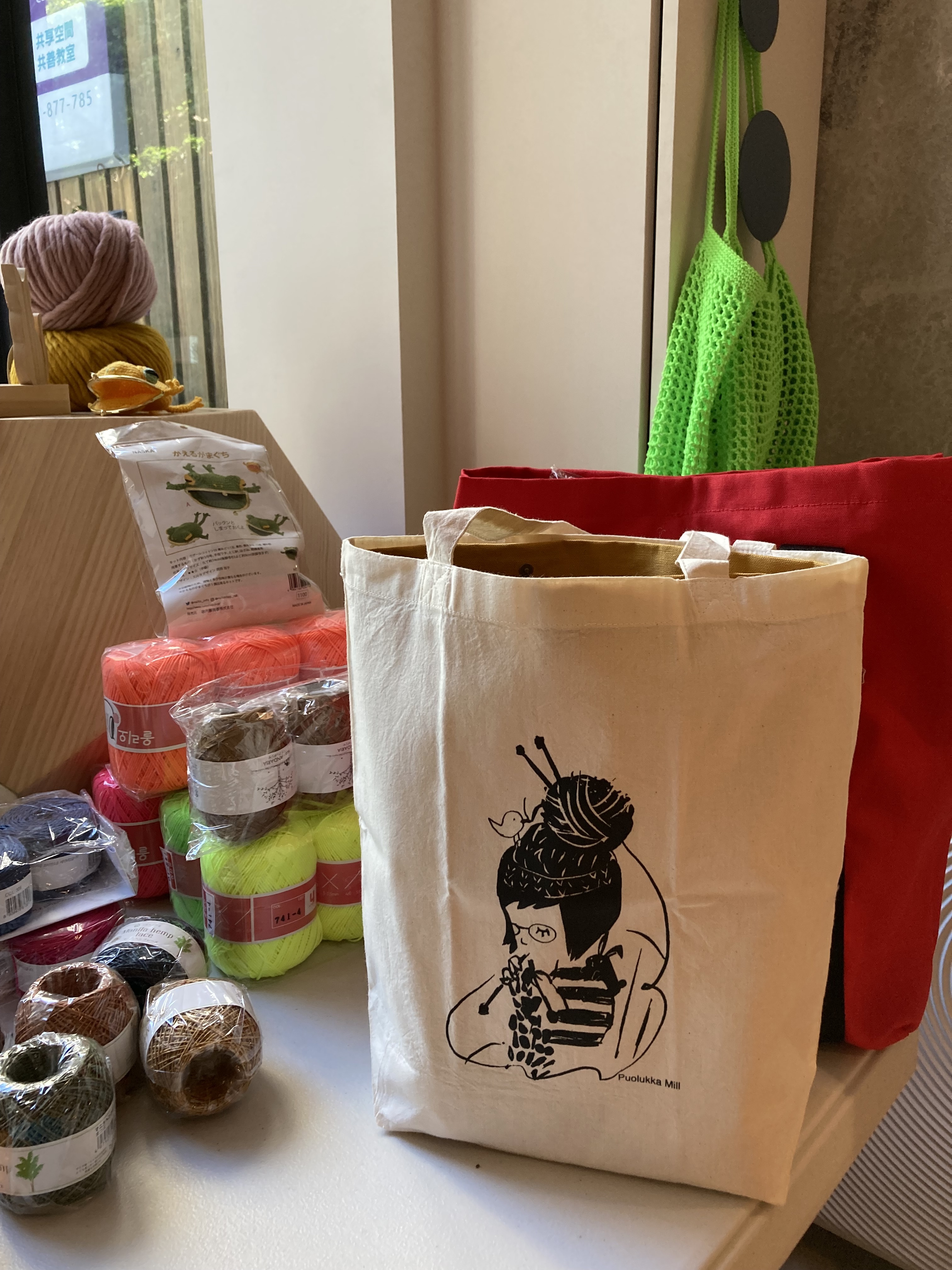 袋邊的提把方便提拿也可以掛在手上織